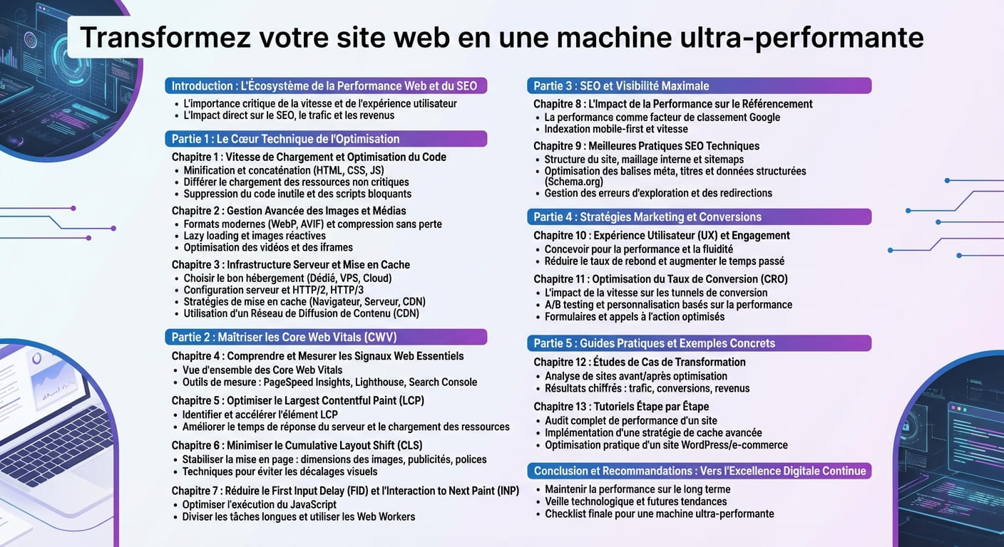 Apprenez à atteindre des scores proches de 99 % sur Google PageSpeed Insights grâce à des techniques précises : optimisation du code et des images, mise en cache efficace, configuration serveur performante, et respect des Core Web Vitals (LCP, CLS, FID). Ces méthodes vous permettent d’obtenir un site ultra-rapide, conforme aux standards SEO et technique actuels.